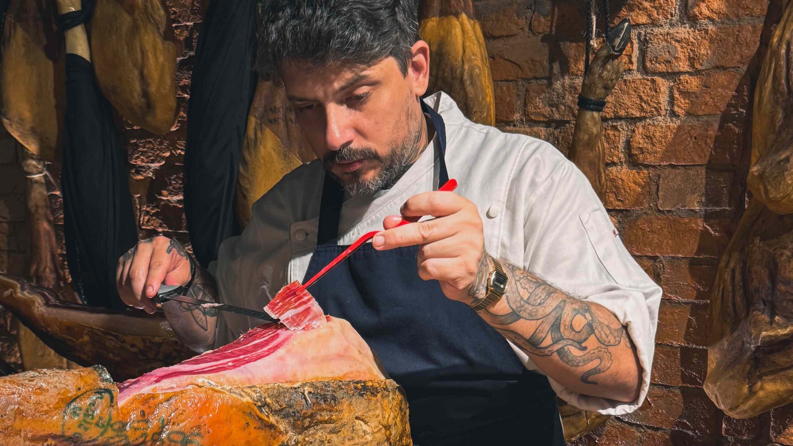 “Um corte errado compromete tudo. Cortar jamón é um ritual”, defende o chef, que faz parte do movimento pela valorização dessa técnica artesanal no Brasil.