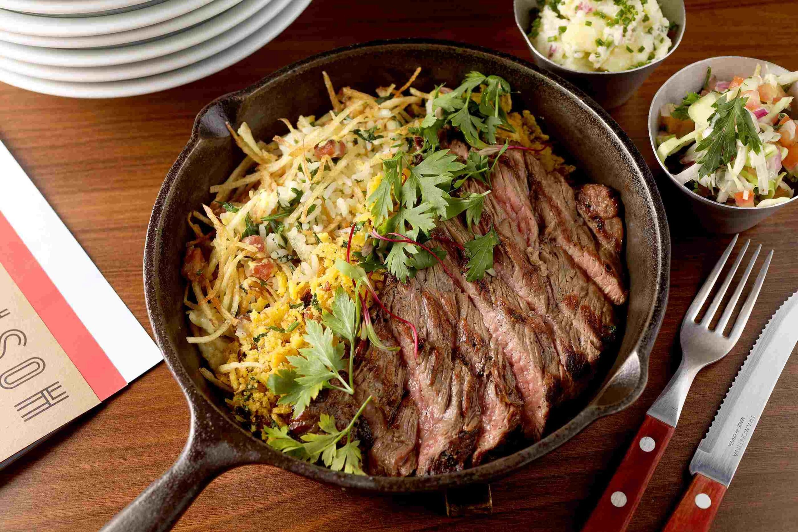 Dedicado a homenagear a culinária paulistana, o restaurante do chef Fellipe Zanuto tem uma seção do menu batizada de “Para os nossos netinhos”, na qual é possível encontrar pratos kids como o filé de frango com arroz e fritas (R$ 39) e o macarrão na manteiga ou no sugo (R$ 39). Para os adultos, há pedidas como a Fraldinha (R$ 119), que acompanha arroz biro-biro, farofa de milho com bacon, vinagrete de feira e maionese de batata.